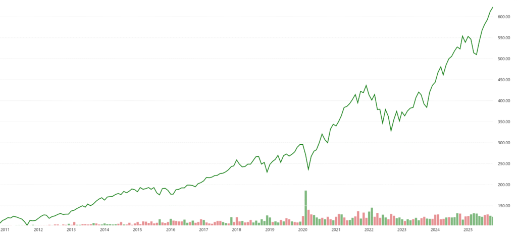 Jika anda melabur RM10,000 di VOO pada 1 Jan 2014, nilainya pada 1 Jan 2024 akan menjadi sekitar RM29,000, hampir 3x ganda daripada modal asal — walaupun termasuk kejatuhan pasaran pada tahun 2022.
