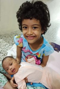 Anakku yang ketiga sudah 4bulan. Baru mula meniarap. dah mula nak bersembang. Kakak pula pandai bercakap.